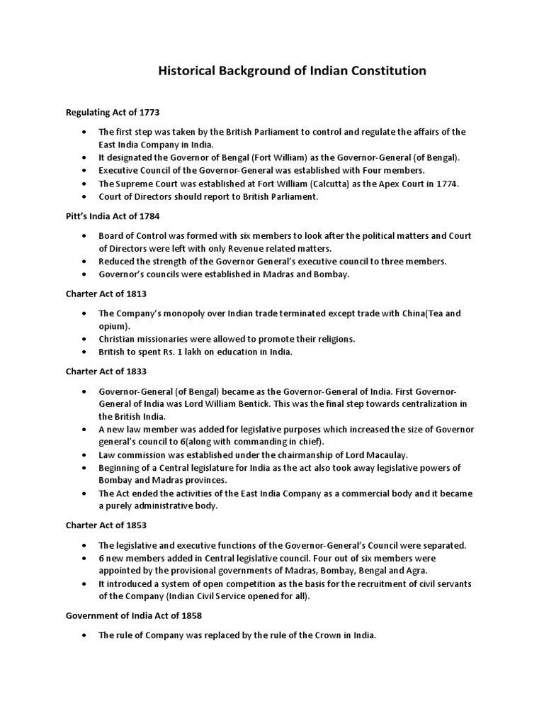 The act of 1858 divided the patronage between the government of india and the secretary of state in council. It abolished the council of india established by the government of india act of 1858. The indian councils act 1861 was passed by british parliament on 1st august 1861 to make substantial changes in the composition of the governor generals council for executive legislative purposesthe most significant feature of this act was the association of indians with the legislation work.