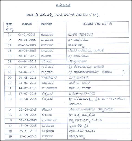 These dates may be modified as official changes are announced so please check back regularly for updates. Government of karnataka has declared its list of holidays for 2019. Karnataka government holidays 2016pdf.