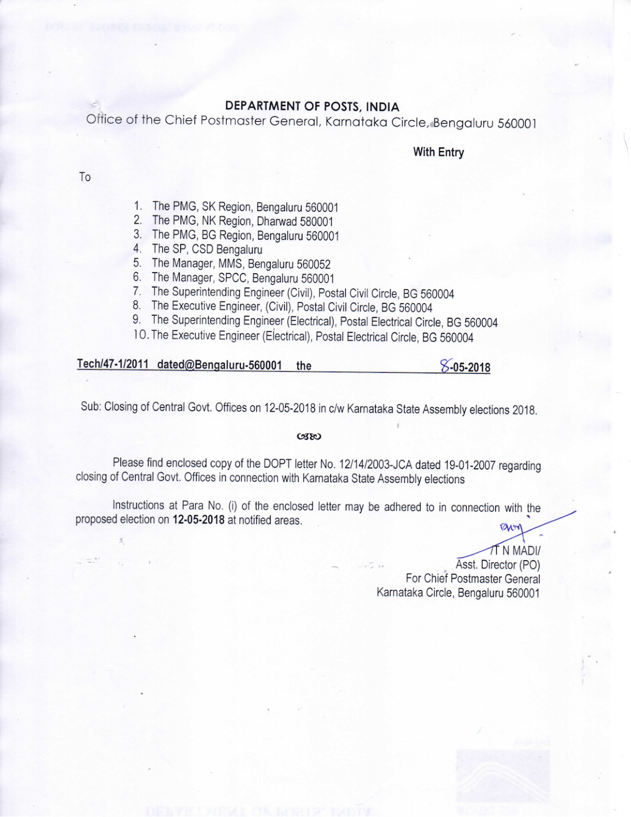 Closing Of Central Govt Offices On 12 05 2018 In C W Karnataka State Assembly Elections 2018 Sa Post Government Gateway Login Ofsted